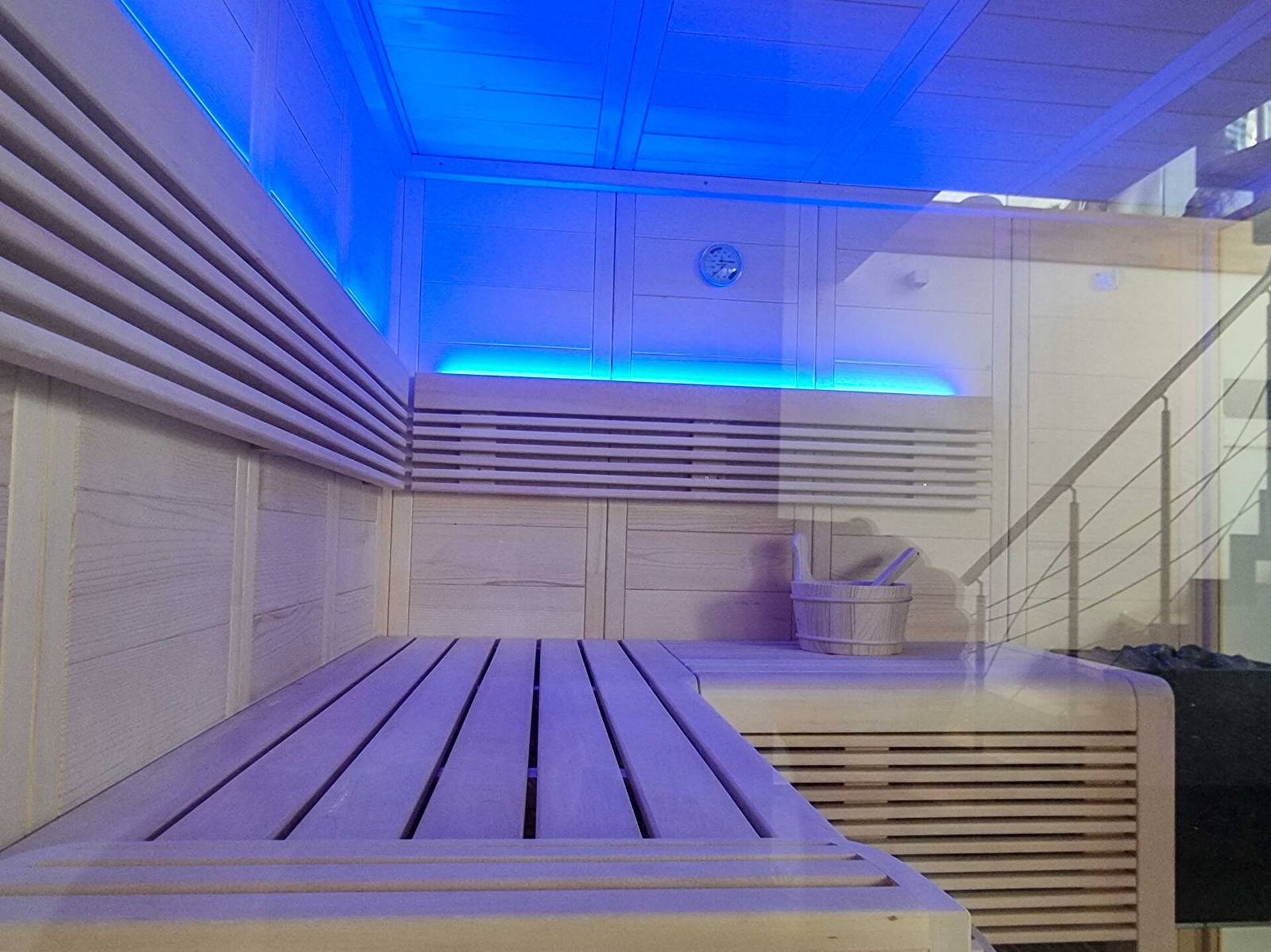 Nous avons le plaisir de vous présenter une réalisation exceptionnelle : un sauna d’intérieur haut de gamme, conçu pour offrir une expérience de détente inégalée. Ce modèle unique se distingue par sa conception sur-mesure et par une caractéristique rare et précieuse : ses trois faces vitrées. Cette spécificité permet d’apporter une luminosité naturelle exceptionnelle, créant ainsi une atmosphère à la fois chaleureuse et apaisante.