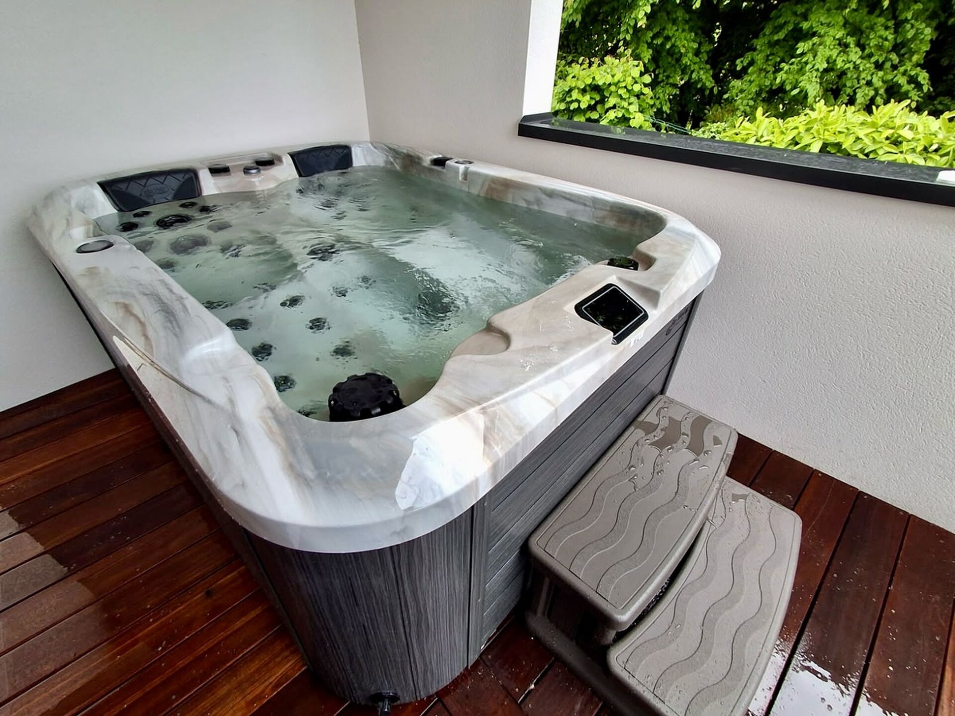 Cette conception permet à un couple de profiter pleinement du spa sans modifier le niveau d’eau, garantissant un confort optimal pour chacun.