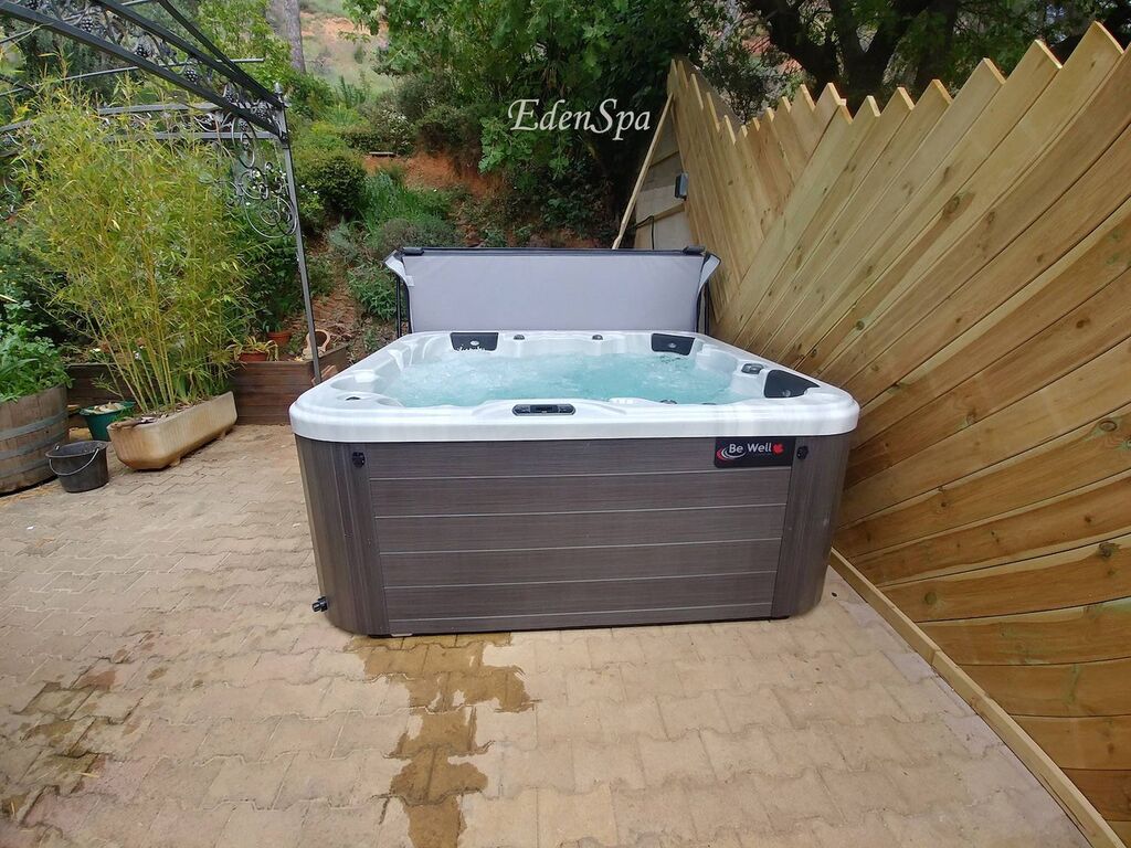 Le spa prend place au bout d'une terrasse, à l'ombre d'une palissade construite pour l'occasion, sur la commune de Vitrolles.
