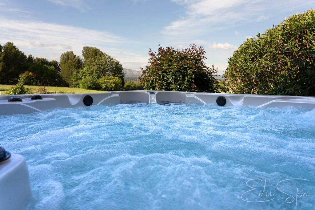 Le spa a été installé sur une terrasse indépendante, donnant sur une vue imprenable sur la Sainte Victoire, une montagne célèbre pour avoir été peinte par le célèbre artiste français Paul Cézanne. Cela offre une expérience de baignade unique et immersive, permettant aux utilisateurs de se détendre et de se ressourcer tout en admirant la beauté de la nature environnante.