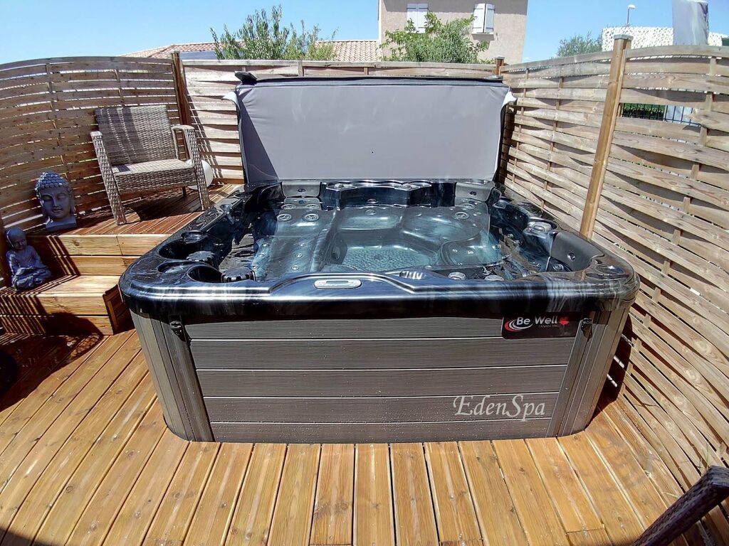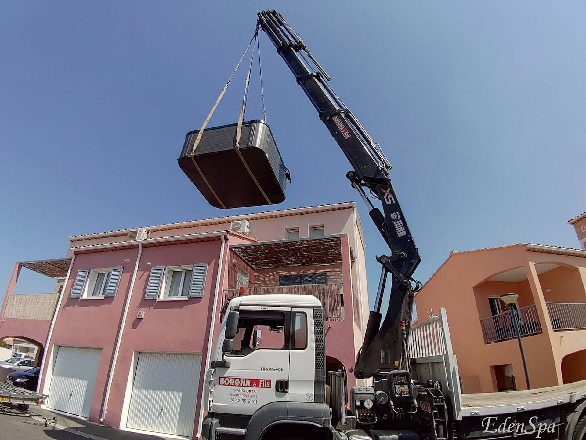 C'est dans une maison d'une résidence de Port-de-Bouc que nous avons installé un spa familiale de 5 places. Il a fallu faire appel à une grue pour passer au-dessus de la maison, car, comme c'est souvent le cas, il n'y a aucun accès direct à la cour arrière.