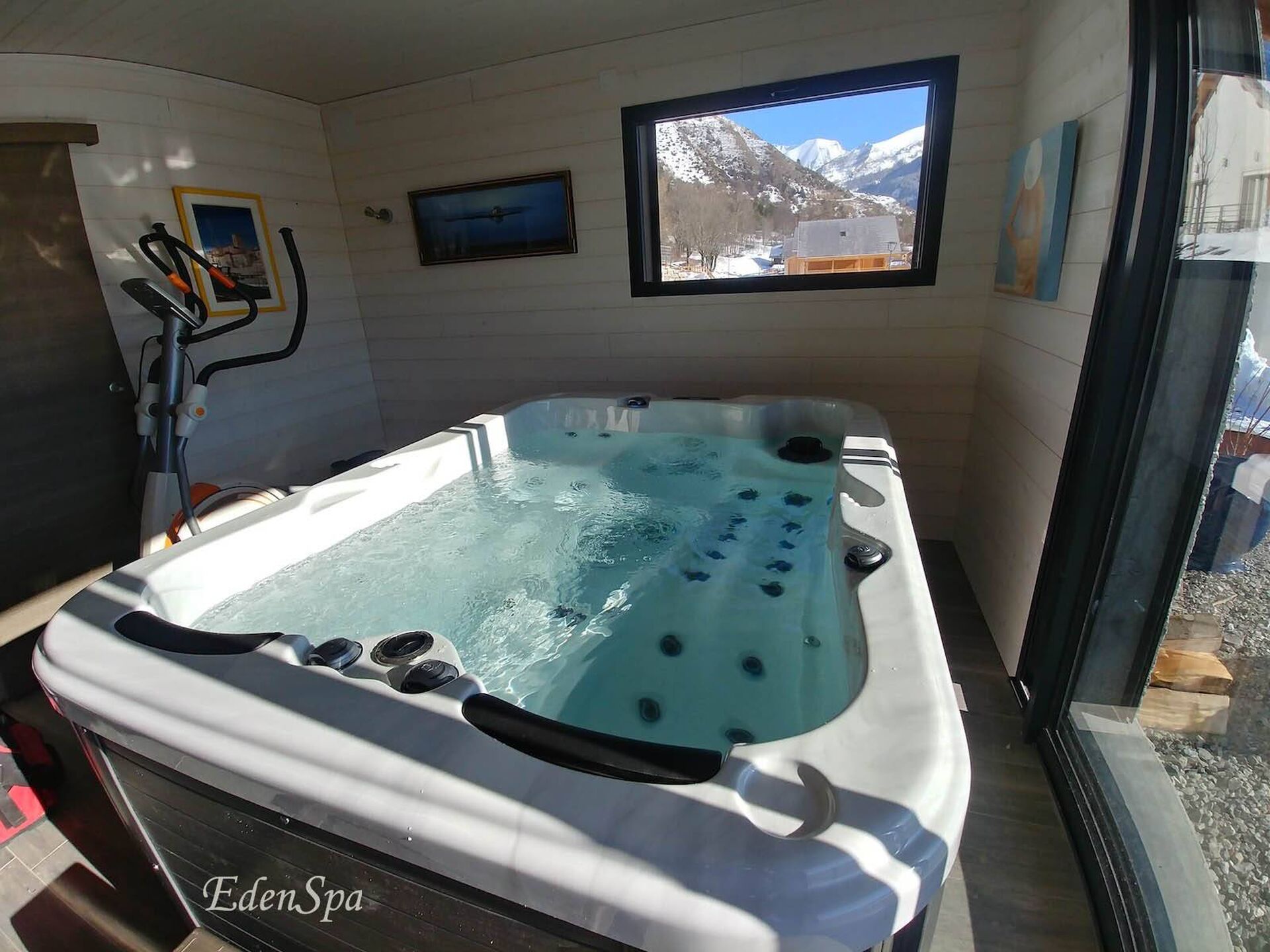 Le cadre est merveilleux, car le spa prend place dans un chalet, à deux pas des pistes.
