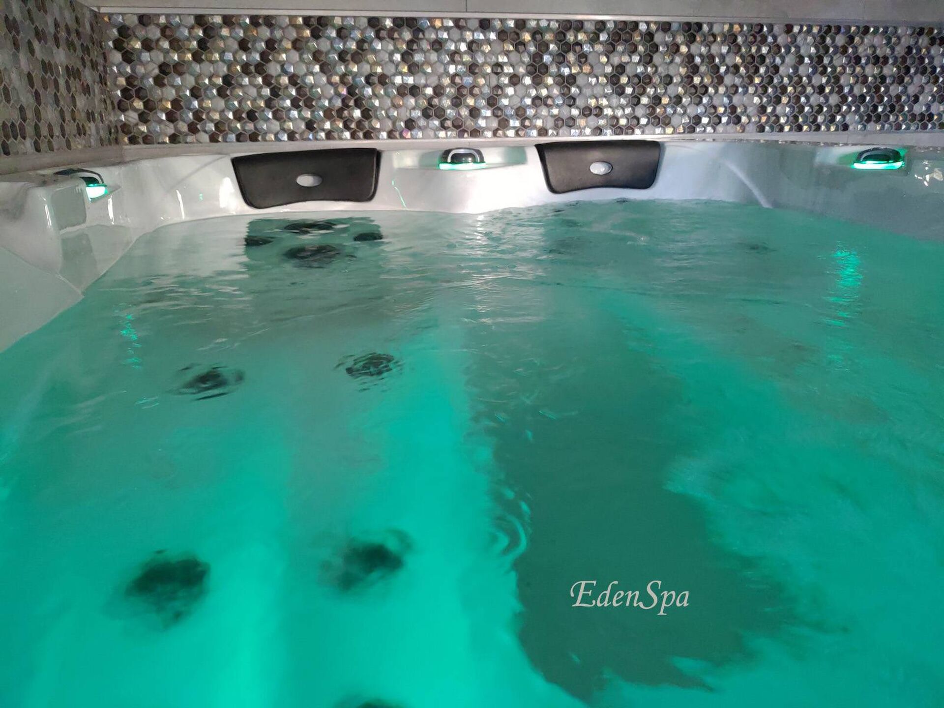 La chromothérapie du spa participe également à cette ambiance. Il est possible de sélectionner une couleur précise ou des les faire défiler avec un fondu enchainé.