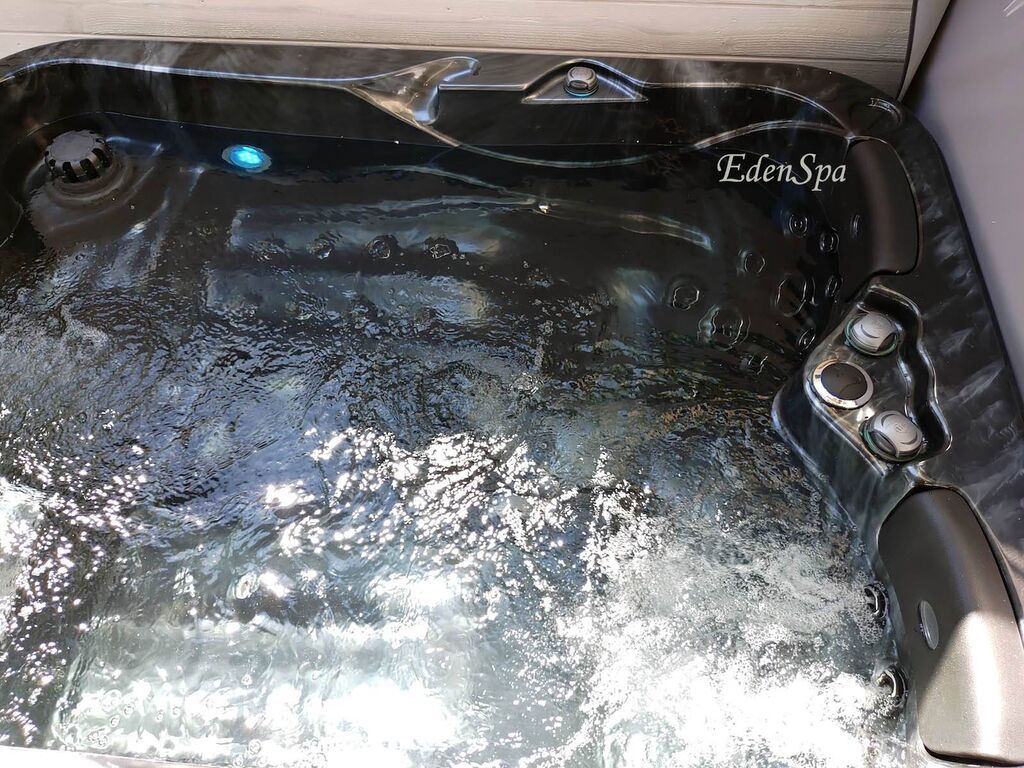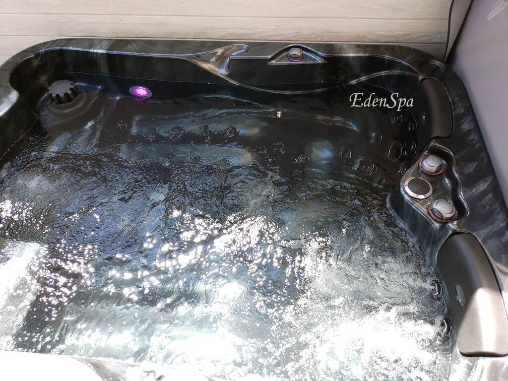 La couleur de la coque, Pearl Shadow, associée aux jets reverse chrome (un insert en inox dans les jets de massage) apportent une touche de modernité dans cette réalisation haut de gamme.