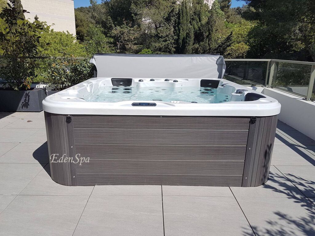 C'est un spa haut de gamme, le O575 que notre client a choisi. Ce modèle équipé de 75 jets, de 3 pompes de massage et d'une blower est très puissant et offre un excellent massage. Le vulcano jet, qui prend place au centre du spa, permet de masser une zone spécifique comme les pieds, les cuisses, les lombaires ou la ceinture abdominale.