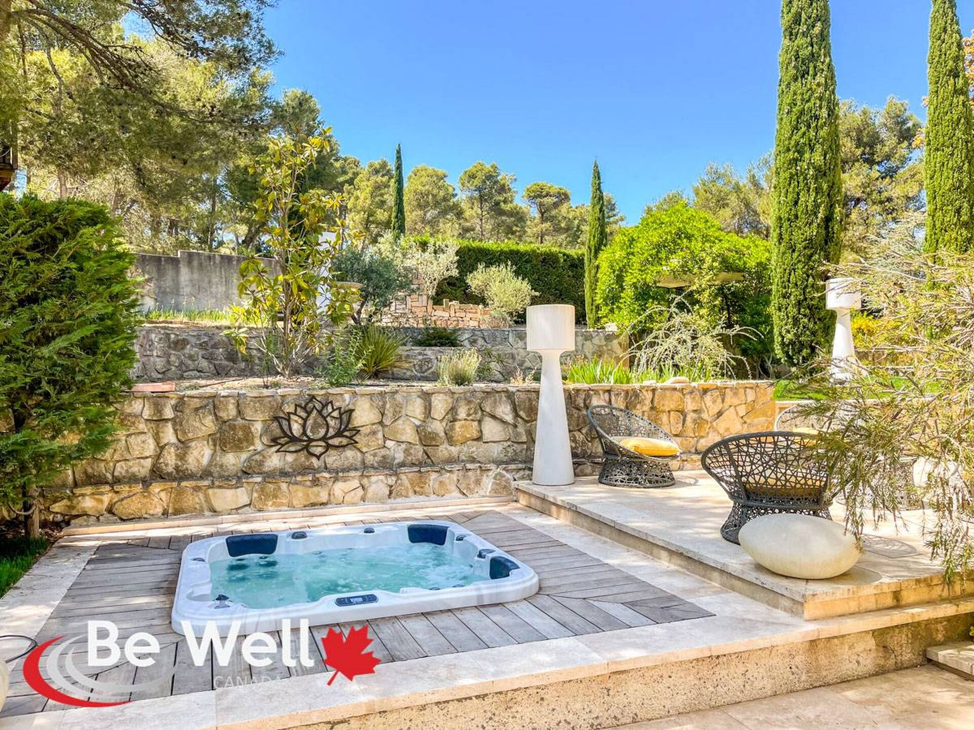 Ici, dans cette réalisation, le spa est intégré dans une terrasse en bois et vient parfaitement s'accorder au reste de l'environnement très classe, bravo !