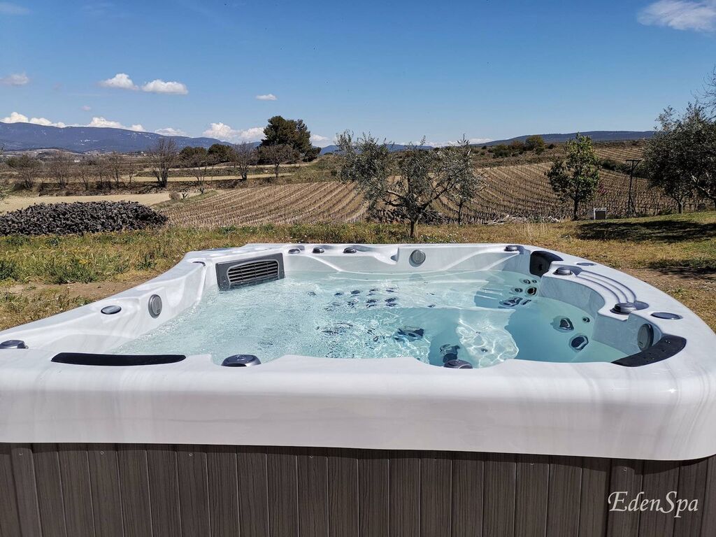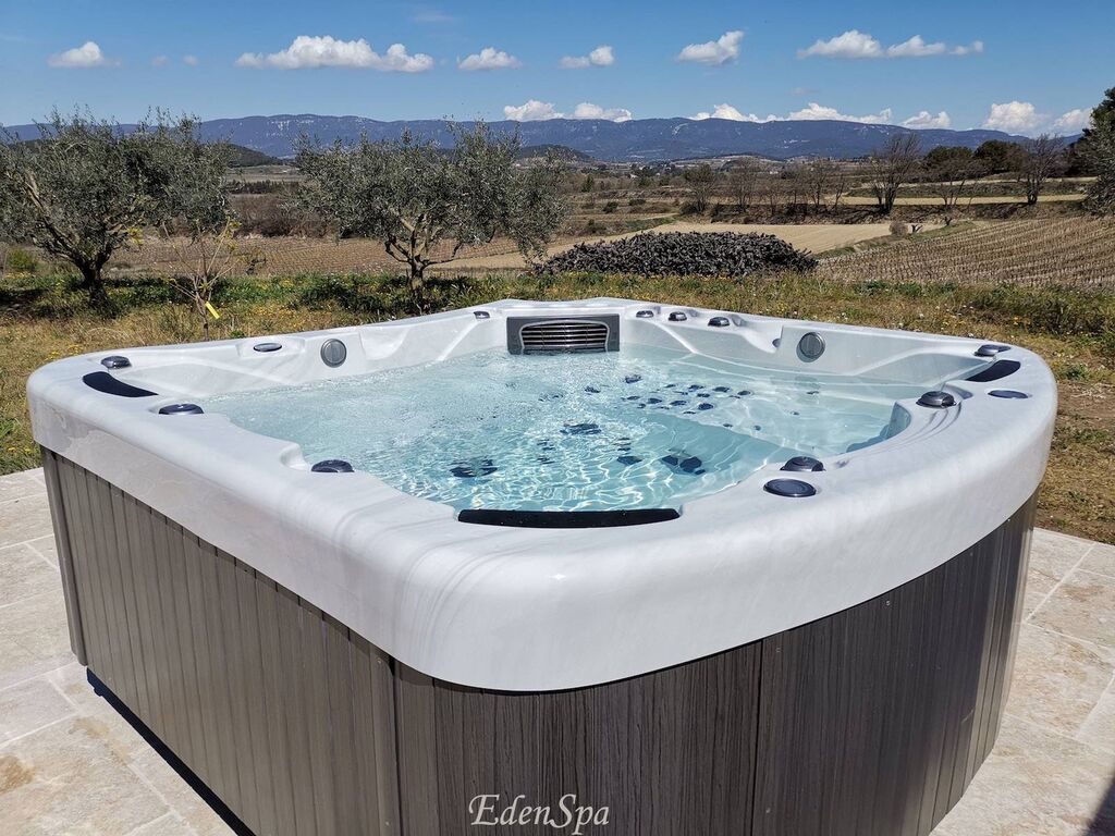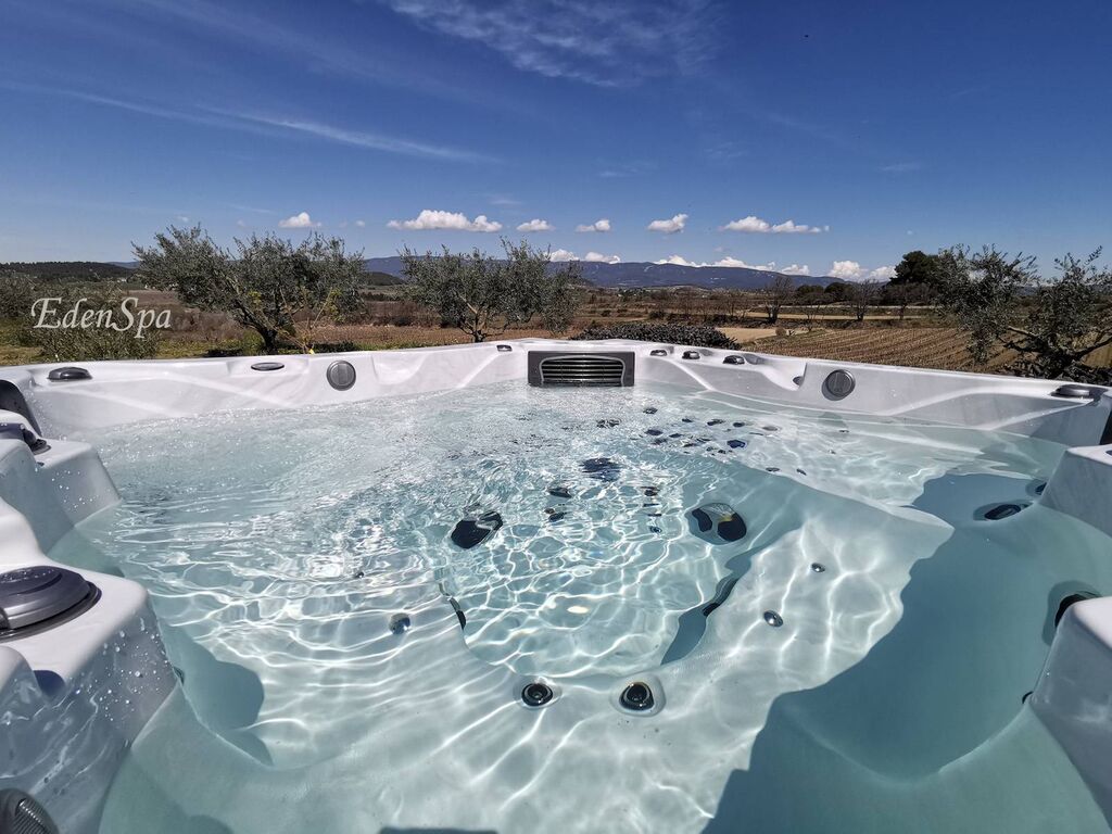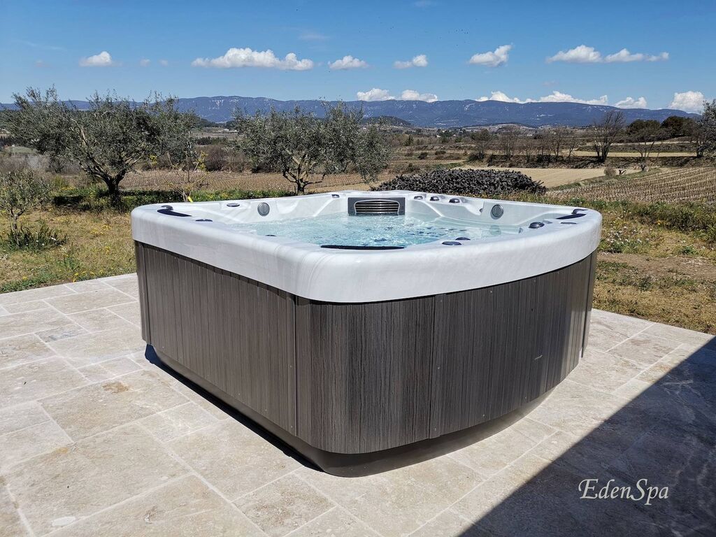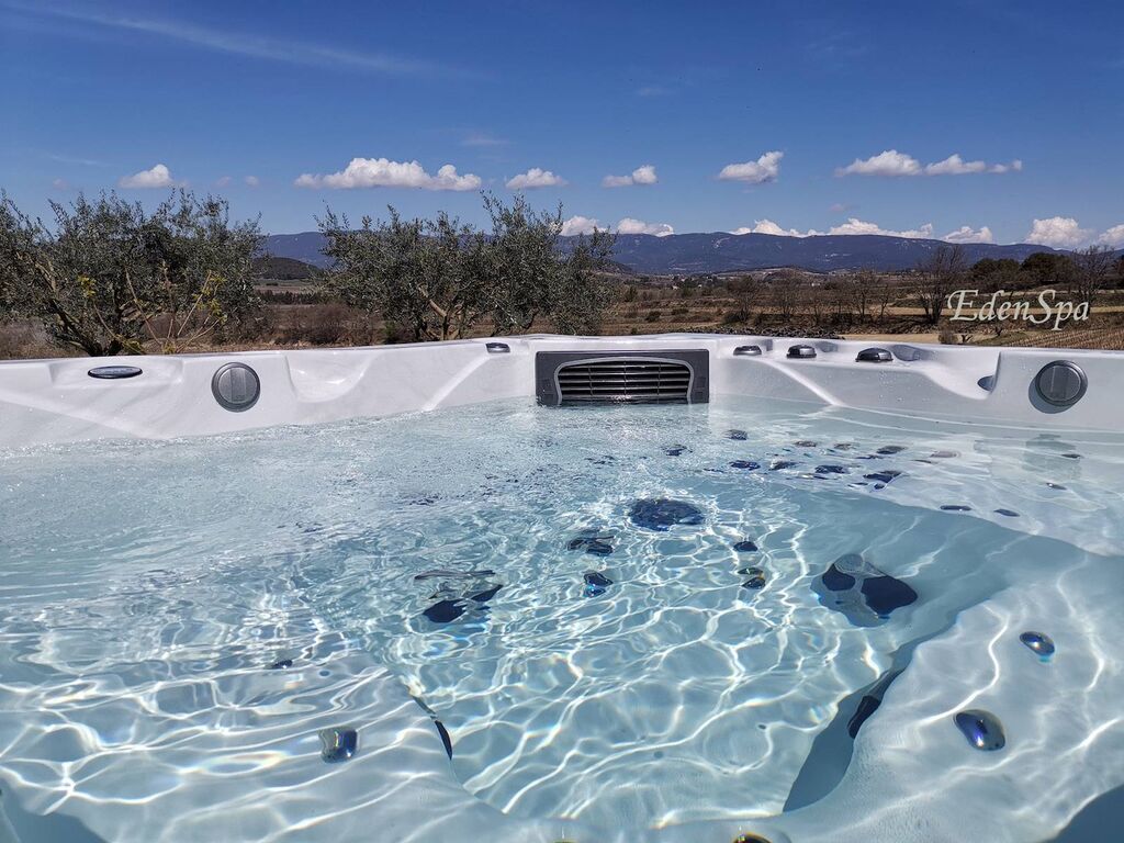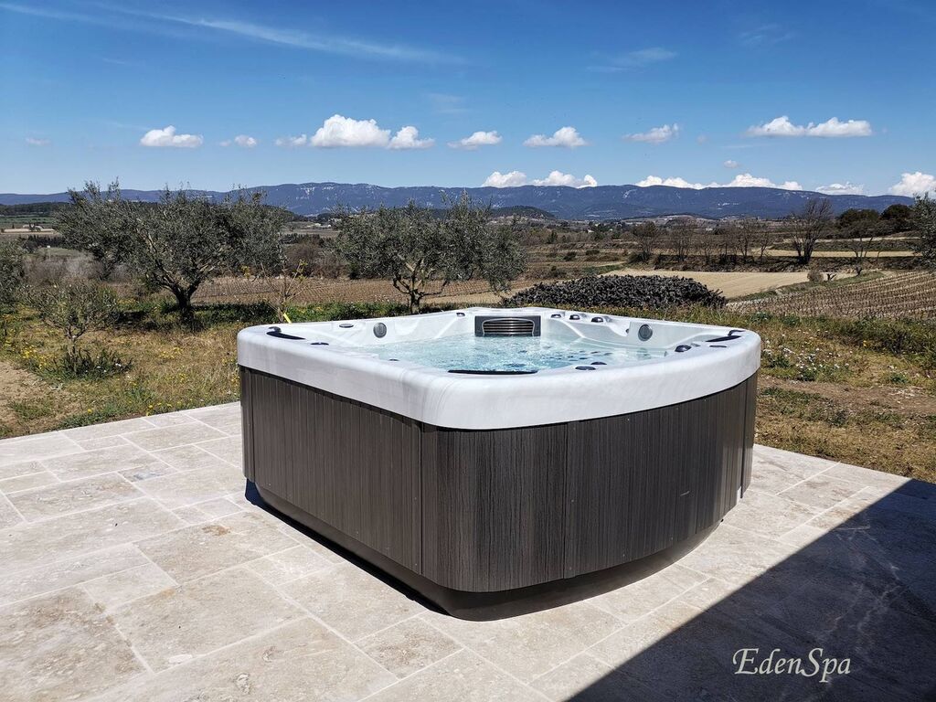 Imaginez-vous maintenant, sur une vaste terrasse, en contemplant une vue incroyable sur les vignobles de Pertuis. Le spa E585 est judicieusement positionné, vous permettant de vous immerger dans un cadre à couper le souffle tout en profitant des bienfaits de l'hydrothérapie. Un moment de détente et de sérénité qui comblera tous vos sens.