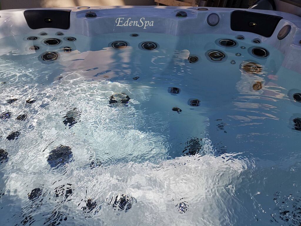 Le spa prend place sur une terrasse spécifique, une décoration et un parquet bois viendra bientôt compléter l'installation.
